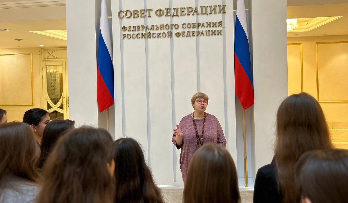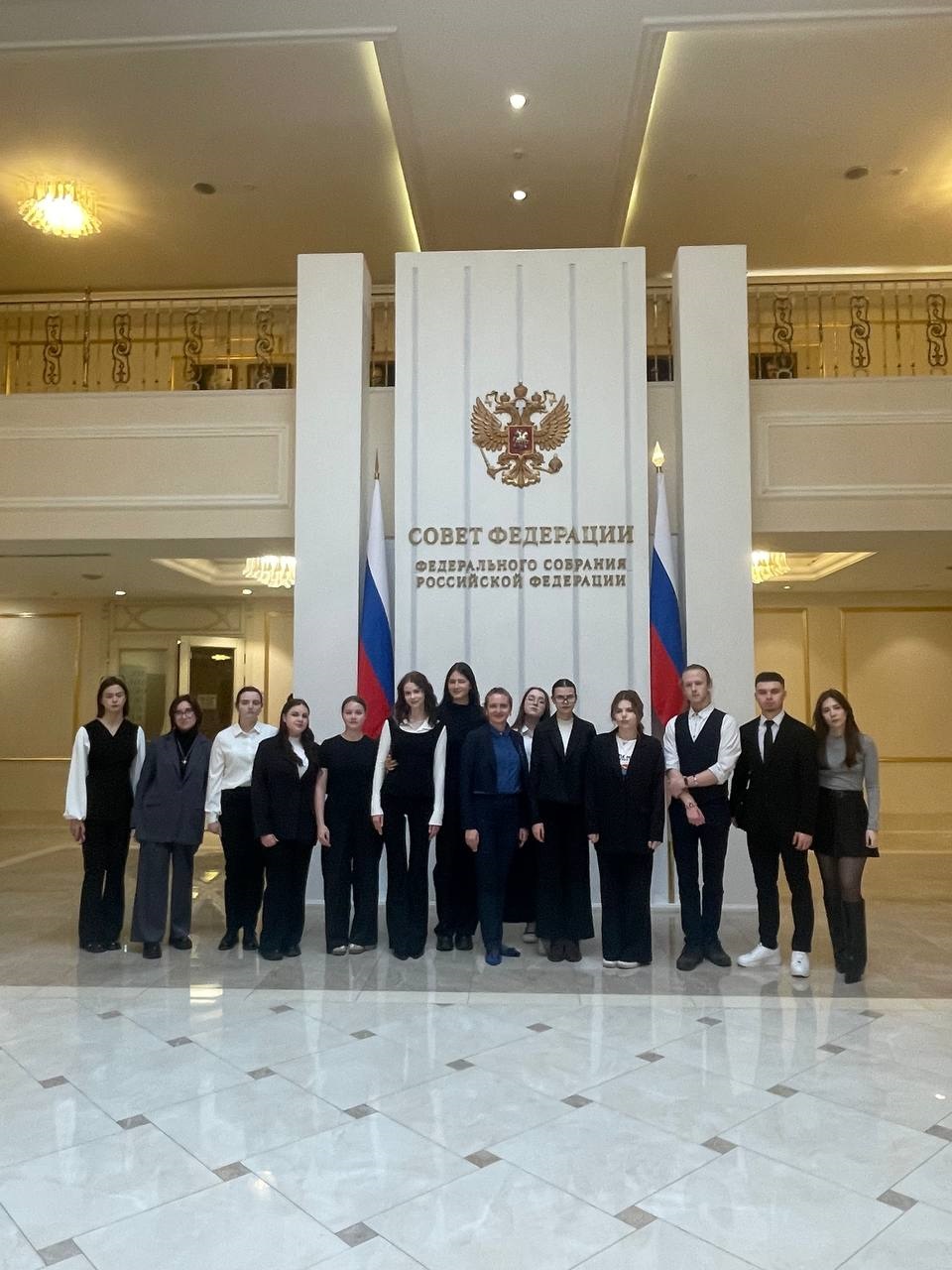 Посещение Совета Федерации оставило много ярких и незабываемых впечатлений. Экскурсия со знающим своё дело экскурсоводом - Екатериной Сергеевной Сидоренко, позволила узнать много новой и полезной информации. Студенты оказались в атмосфере дипломатической торжественности и деловой парадности, присущая этому значимому месту, что дало возможность ощутить всю важность работы людей, принимающих непосредственное участие в управлении нашей великой страной. В ходе экскурсии много внимания было уделено символике регионов РФ, в том числе и новых субъектов федерации. Экскурсовод подробно рассказала о структуре Парламента, основных вопросах ведения и полномочиях Совета Федерации, порядке формирования палаты, о том, как по-разному субъекты Российской Федерации подходили к выбору цвета, пропорциям, рисунку своего флага, что говорит о многообразии народов России и их национальных культур.